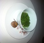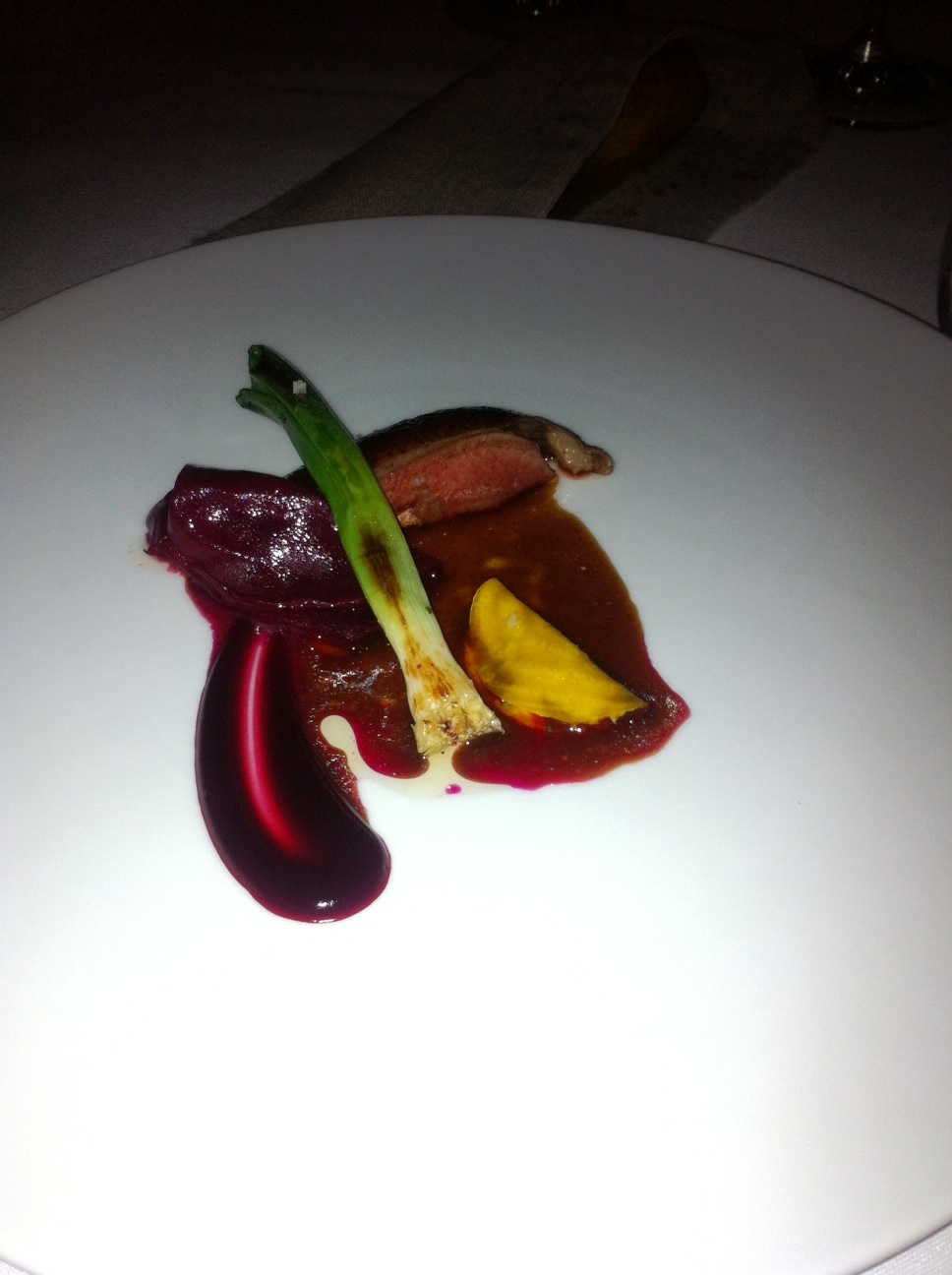 The menu flowed from there integrating cucumber, goat cheese, cauliflower, foie and sunchoke in such a clean presentation. One of the funnier moments in our meal was when our friend Ben tried squab for the first time. As a New Yorker, Ben couldn’t quite get over the vision of pigeons in the park to truly enjoy the squab. The beef course with wood sorrel, bone marrow, and marble potatoes was a gorgeous as it was delicious. The cheese course was a chevre cheesecake that was to pretty to eat.