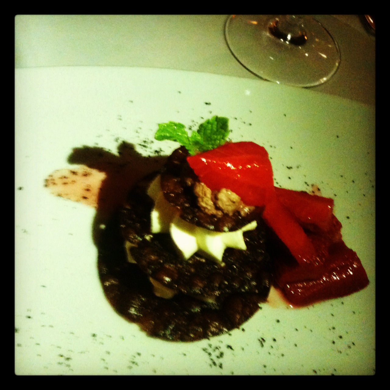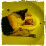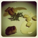 Black Cod or Rabbit Two Ways. The black cod was paired with a celeraic puree, organic black spanish radish, black trumpet mushrooms, and a brown butter vinaigrette. It was so decadent! I am always shocked when the fish dish is richer than the meat. This dish was gratifying with each bite and left you wanting another bite but not sure if you could should. The Rabbit Two Ways was the MVP of the night. There was saddle of rabbit with beets and fava beans. The pureed beets added a velvet quality to compliment the structure of the rabbit. There was also an organic chard wrapped rabbit saucisson in brodo with pea shoots and purple carrots. WOW!!!!!! First, the saucisson was exactly what it should be, flavorful and tender. The broth that the saucisson was nestled in was the broth that all soups should be based upon. It had depth that most broths don’t. This dish is going to have me smiling for the rest of the night.