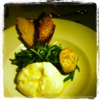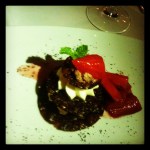 Gnocchi or Squid Ink Bucatini! The gnocchi was ridiculous. They had three different types on the plate. One was a ricotta gnuddi with a pecorino sauce…I wanted to drink the sauce, it was cheesy goodness. The second was a sweet potato gnocchi with a sage emulsion. It was a beautiful blend of salty and sweet. The third type was what made the dish, it was a Fontina Crema Stuffed Potato Gnocchi. I mean…right??? You cut into it and it oozed goodness. The giant gnocchi was seared to add texture to the sauce inside. Utterly wonderful. The Squid Ink Bucatini had a cannellini parmesan sauce and baby arugula. They shaved grey Mullet Bottarga table side! Bottarga is fish roe that has been packed and dried. It adds that lovely saltiness that only caviar can add. Both dishes were a favorite of the night.
