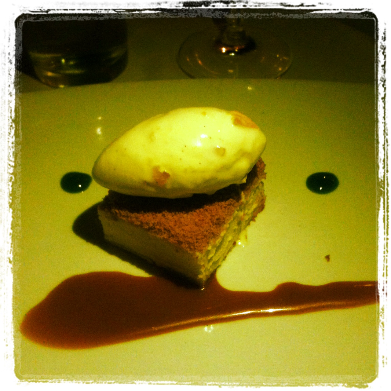 Napoleon or Fiore Di Capra Goat Milk Delights. The Marscapone with chocolate citrus tuile and strawberries was the only dish I did not try, simply because I got distracted by the Goat Milk Delights. By the time I raised my head out of my sweet dream, the marscapone was gone. The Goat Milk Delights was a goat curd cheesecake, candied grapefruit goats milk gelato, salted caramel, cinnamon graham cracker crumbs, and a lemon parsley sauce. I don’t even know if I have to add any more than that description. It was the perfect end to a lovely meal!!!