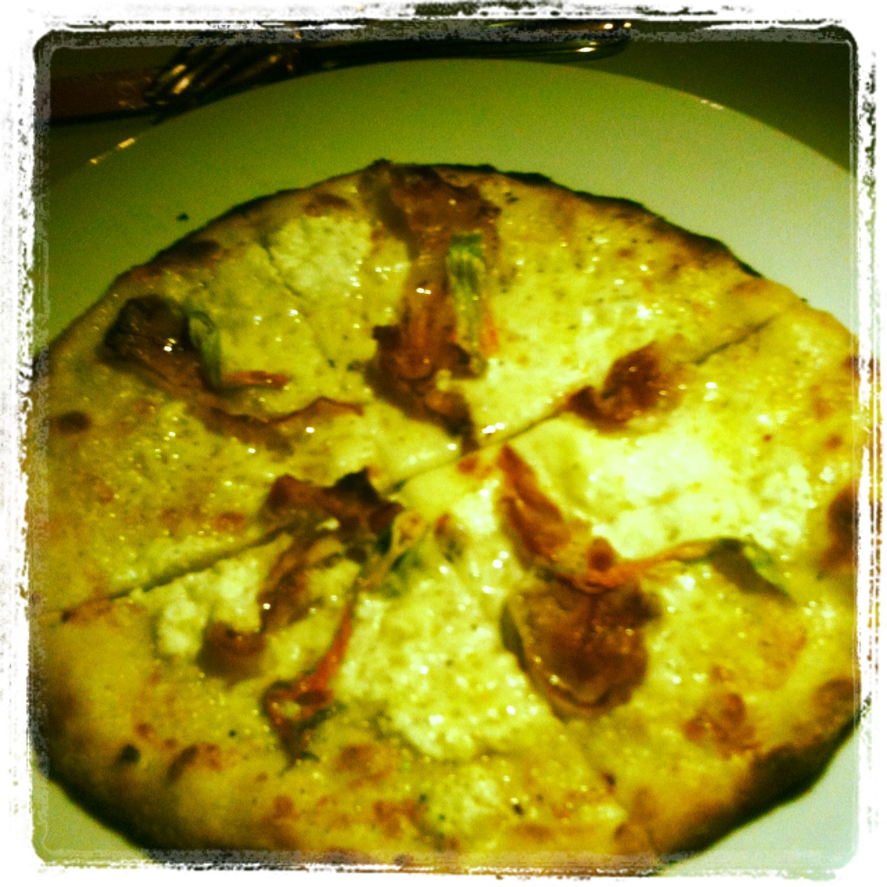 The Guanciale Pizza had squash blossoms and chevre. The Roasted Fig Pizza had