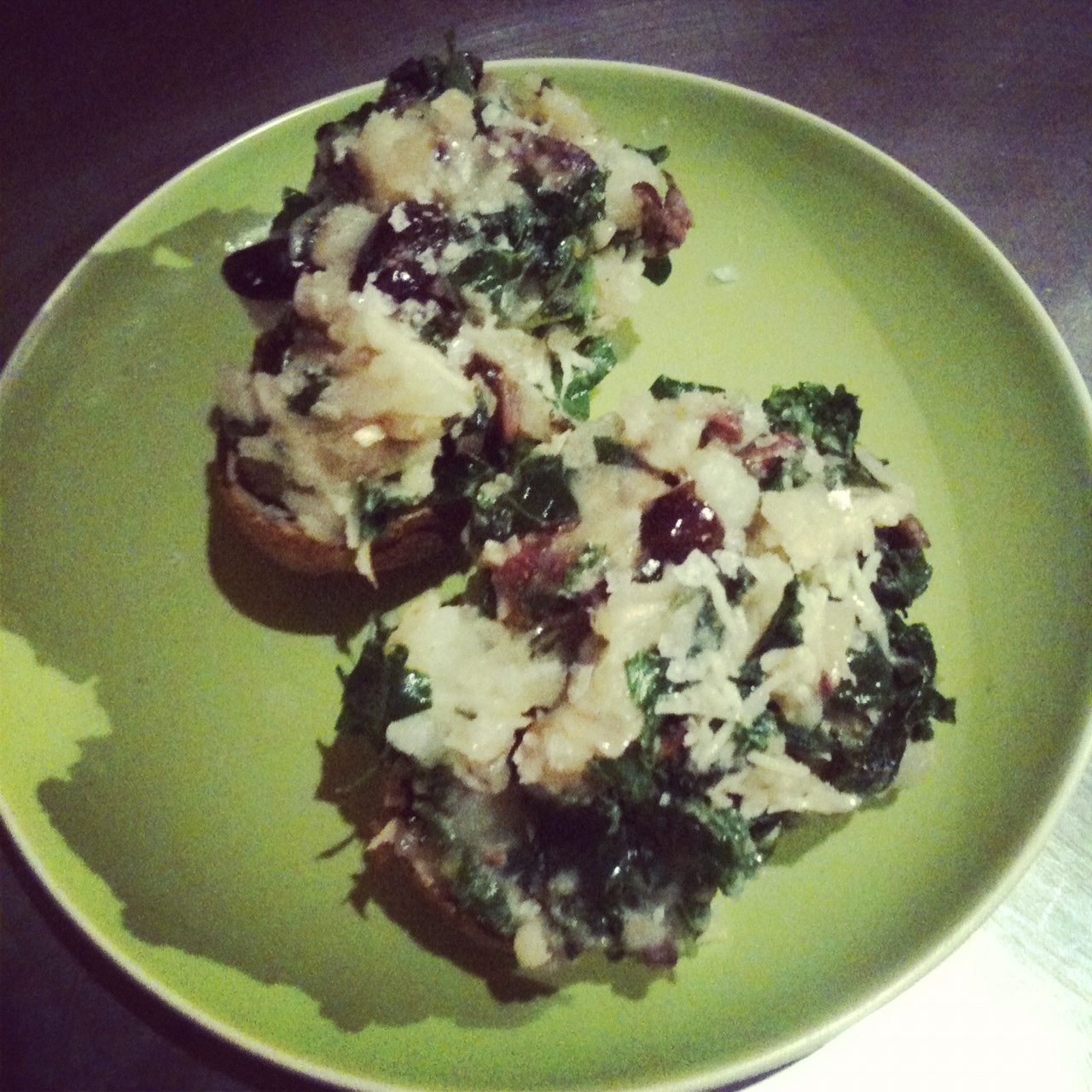 The potato shell gets extra crispy and the inside is filled with delicious textures and salty flavors. Every time I finish this dish I am sad that there is not one more bite for me to have. This is the prefect dish for a busy night because it is easy prep, filling, and delicious. The shell is the perfect vehicle for creativity and you can tweak the basic recipe however you see fit. You can add sausage or bacon if you want some protein. Add more veggies or a different type of cheese. You like kale more than chard…switch them out. Don’t have kalamata olives but have capers…try it out. Need to get rid of some fresh herbs before they go bad….how did you know that would be perfect in this dish? Every time the potato is delicious and every time it is nice and comforting. Love it!