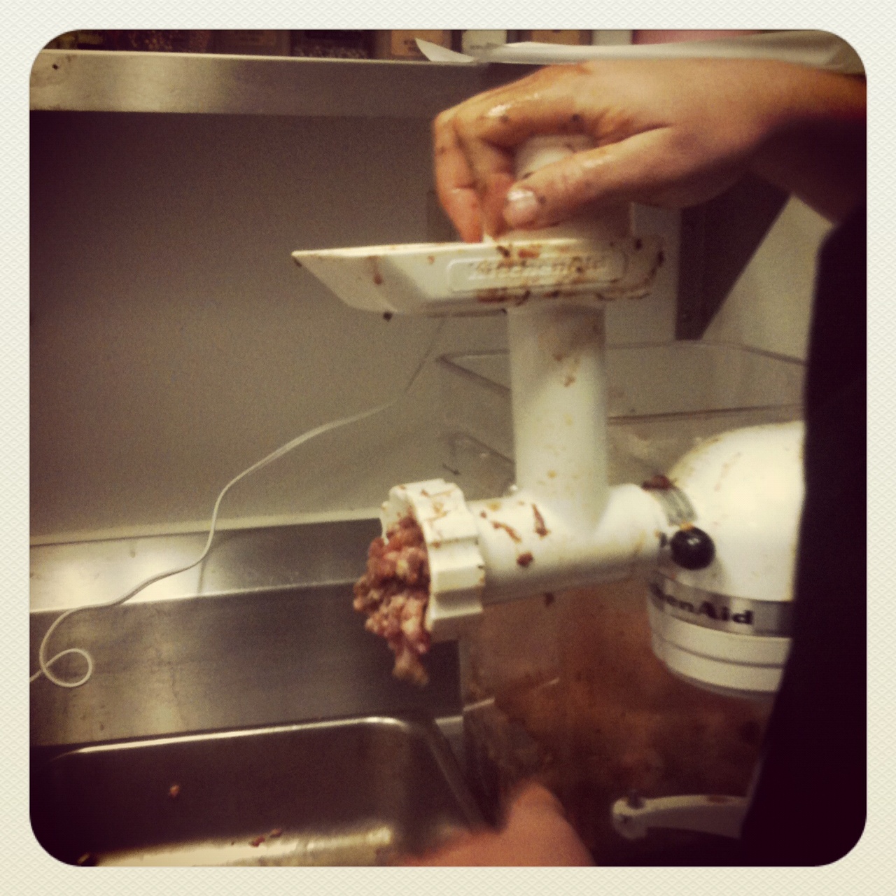 “Honey, can you bring me the meat grinder and the molecular gastronomy kits?”….Wait, what??? I was not expecting that request at 5:15 today. In retrospect, that “Honey, can you” is more reasonable to leave my husbands lips then either of the first two, but still I was not prepared. I was however bribed with a free meal which made me immediately ready to leave work to pick up the meat grinder and molecular gastronomy kit. (It is amazing how well he knows me)