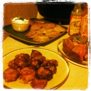 This weekend I saw the first green tomatoes in the grocery store and all I could think of was fried green tomatoes!!! Delicious, crunchy, tangy, and salty. Nothing better. I started thawing out a chicken breast to have it along side my lovely green treats. All day I looked forward to it, but then I got home and honestly didn’t want to go through the fuss for just me. SO I called in a mash up!!!