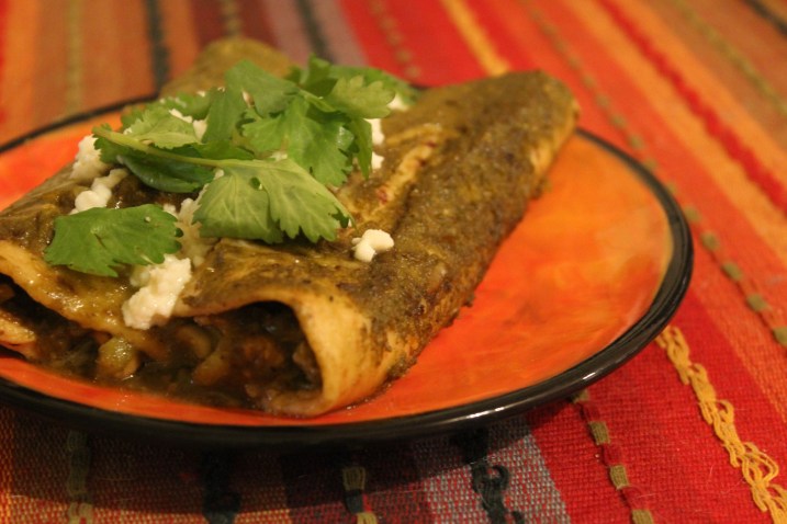 This sauce goes great with chicken enchiladas. Top your enchiladas with the sauce and bake. Reserve a small amount of the sauce to serve with.