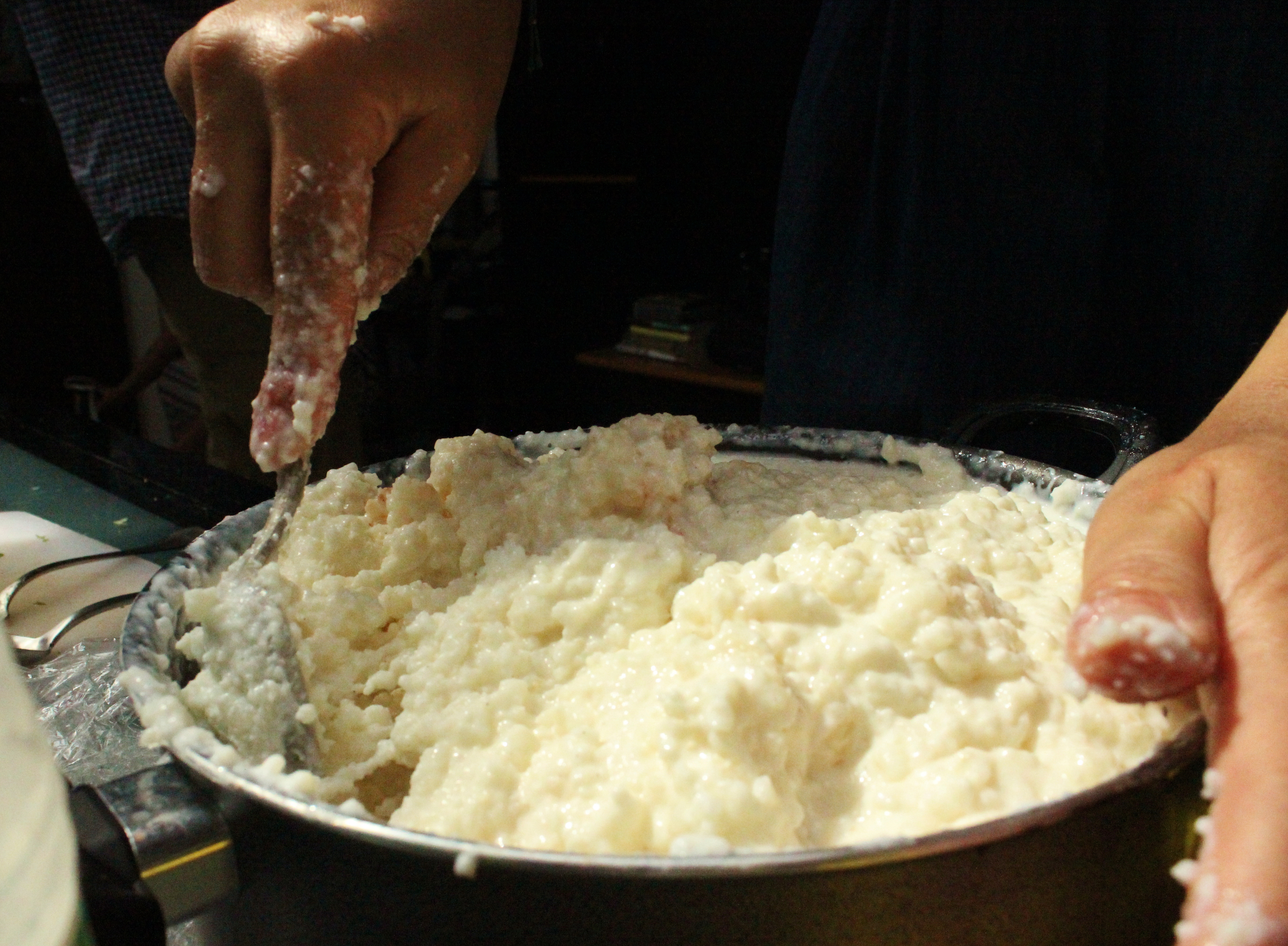 For some it reminded them of a dear aunt who made it and for others it was their mom. We discussed cinnamon and how much to put in it and if it should be sprinkled on top. We talked about vanilla or the “red gold” as some called it. We debated about the amount of milk and whether or not to add cream as well. Everyone had their iconic version of this dish, the way they remembered a family member making it. The rest of the kitchen huddled around the giant bowl just waiting for a taste. As I sat and watched this and the smiles on everyone’s face, I thought of Cookie and her equal love for this dish. I thought about how no matter where we come from, what our food identities are, there are certain things that are universal. One of those is passion and another is family. Food just happens to be one thread that ties it all together.