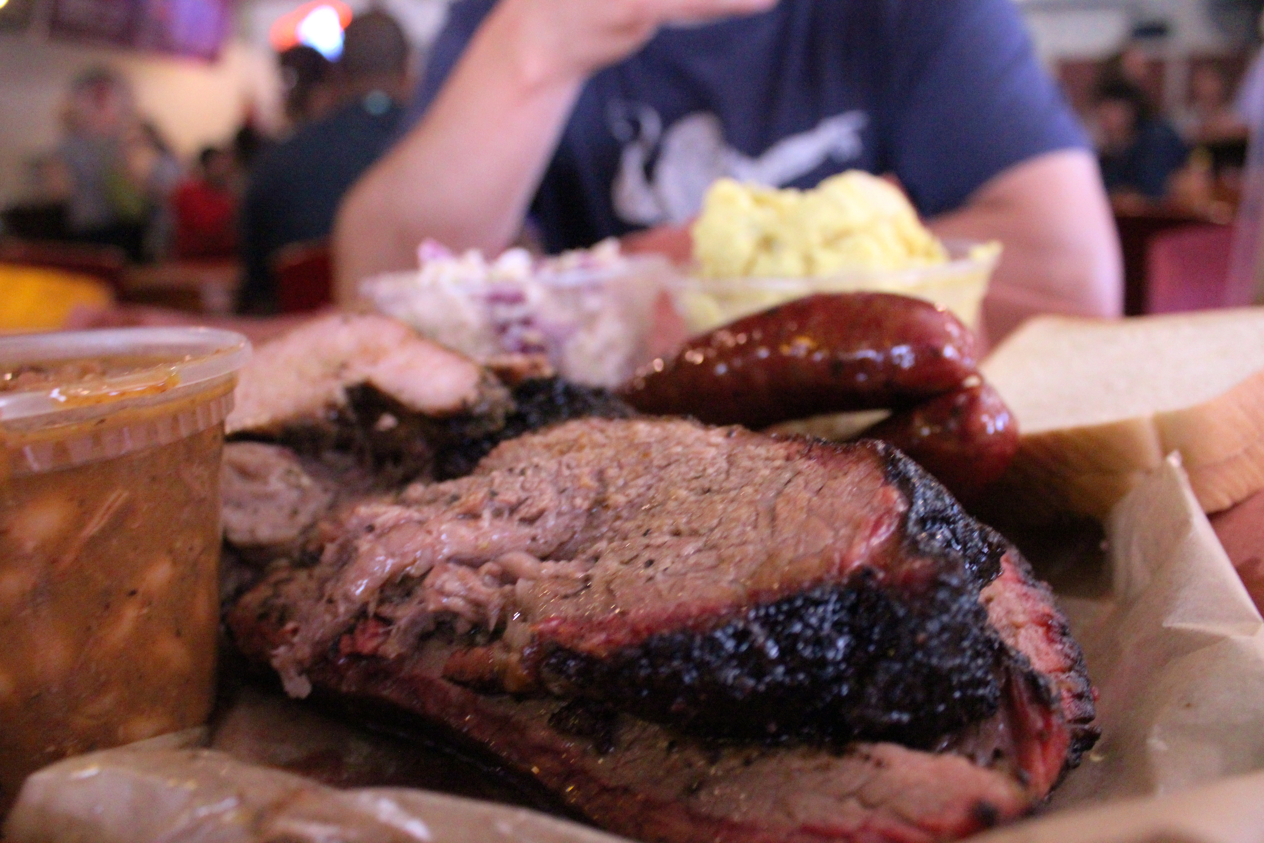 Finally it was our turn at the counter. Unfortunately (or fortunately depending on how you look at it) when you wait four hours for BBQ you have every excuse to say yes. Brisket and Ribs? Of course and lots please. Pulled Pork as well? Sure why not. Would you like beans? Ok! What about potato salad and cole slaw? Pile it on! With our tray mounded high with food we turned eagerly to find the closest seat to feverishly begin our meat consumption. Seats found, elbow on the table, rib to mouth, shoulders relax, eyes close, lips curl in a smile…damn its good barbeque.