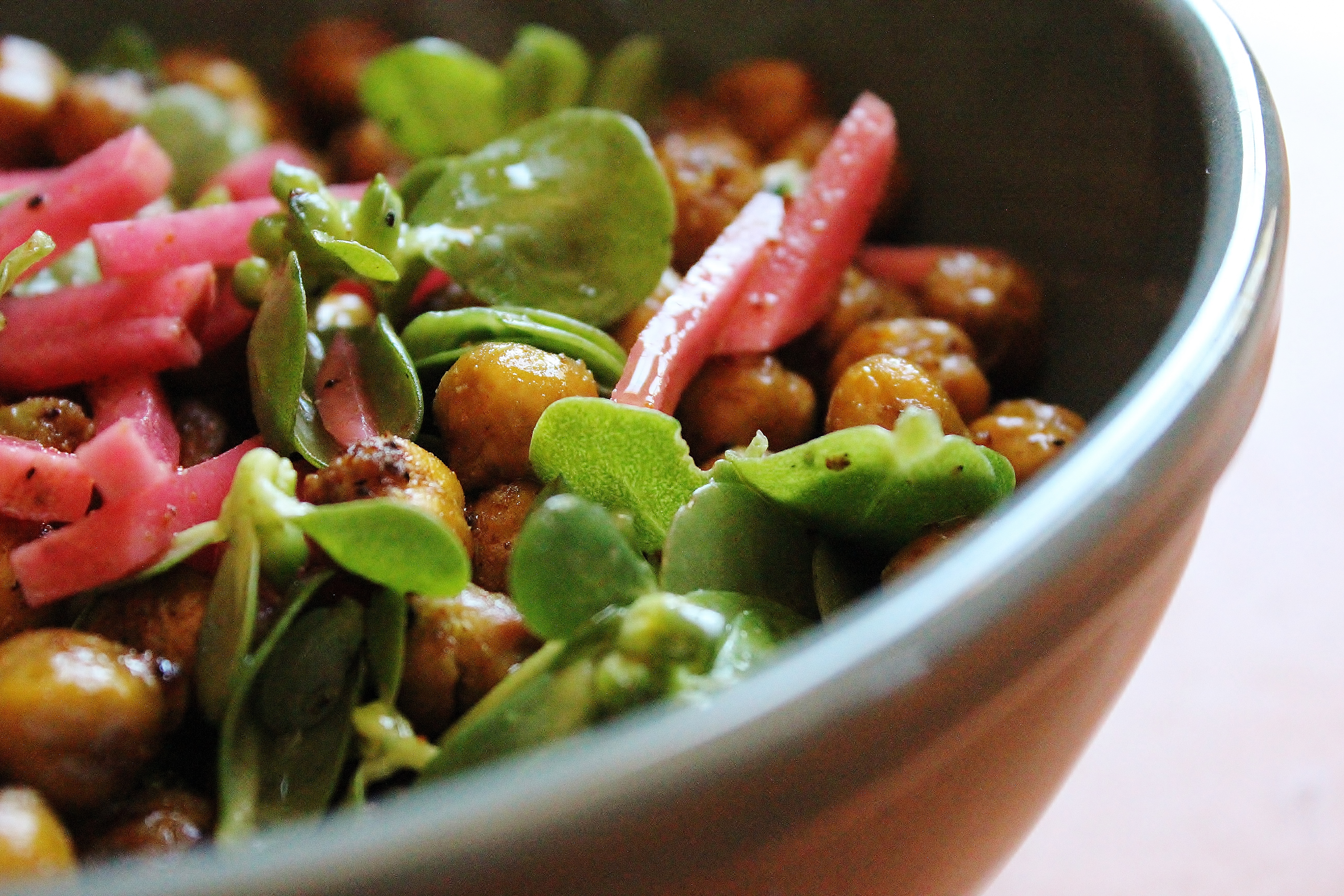 Purslane, Roasted Chickpeas and Pickled Radishes