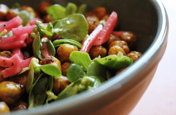 Purslane, Roasted Chickpeas, and Pickled Radishes